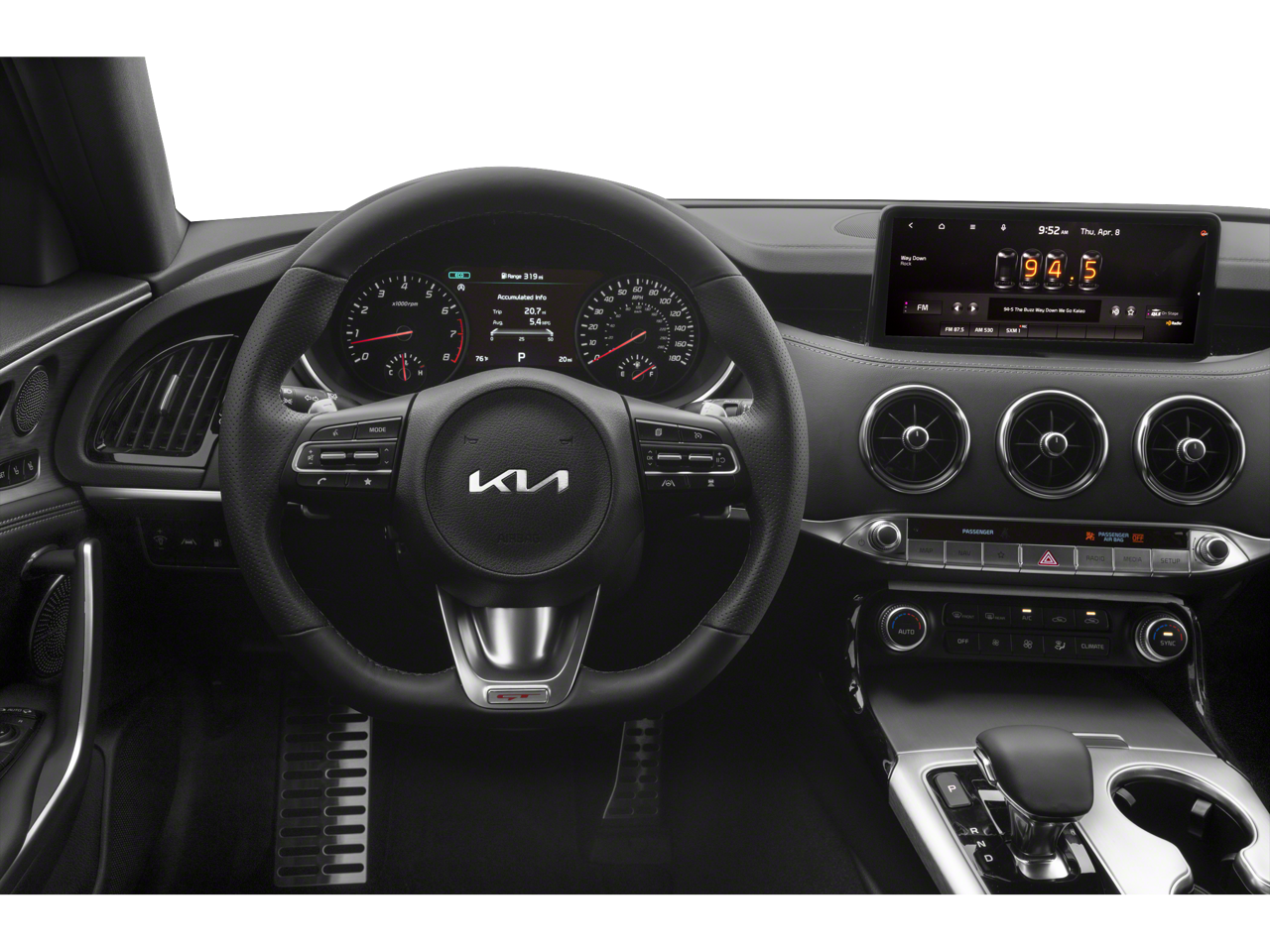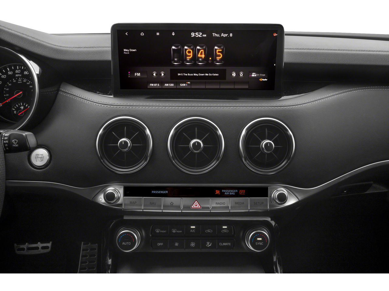 - Radio: AM/FM/MP3/HD Audio System -inc: navigation system w/10.25" touchscreen color display, 9-Speakers, external amp, USB input, Android Auto/Apple CarPlay smartphone integration, Bluetooth® wireless connectivity w/voice recognition, steering-wheel-mounted controls, SiriusXM satellite radio and UVO Link